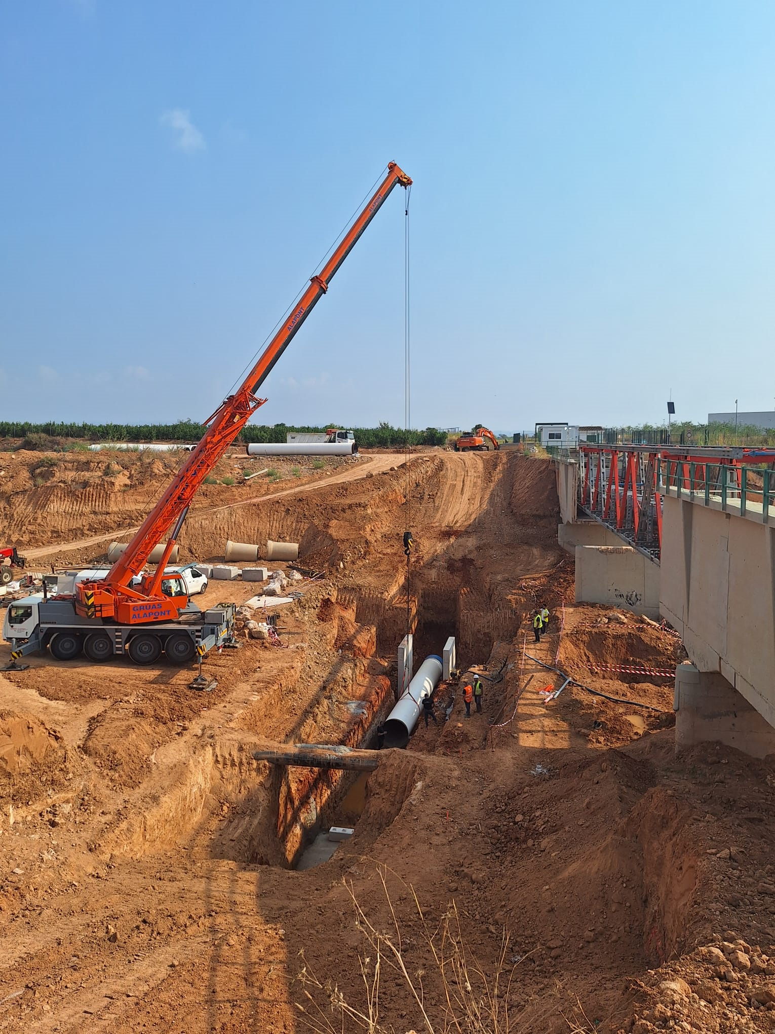 Por último, en el cruce sobre el barranco del Poyo se están empezando a colocar los tubos del baipás soterrado definitivo y se está terminando de ejecutar la arqueta de entrada al mismo.
